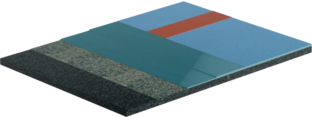 Arena Nord: 2285 m² UnoPad 15 med 2 mm PU. 2025 Belegg: 2 mm PU, farger: Sky Blue & Dusty Grey